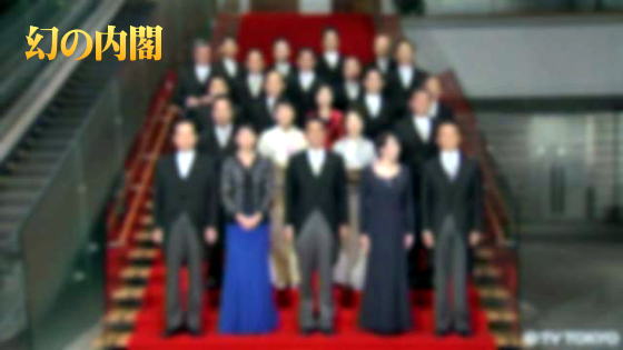 幻の内閣1> 首相:北野 武 官房長官:渡 哲也 総務相:宮崎 駿 文科相:福山雅治 法務相:水谷豊 裏・法務相:藤田まこと 経産相:荻原博子 外務相:丹波哲郎 財務相:小林稔侍 国交相:坂本武 厚労相:田宮二郎 農水相:菅原文太 環境相:吉永小百合 デジタル相:小松左京 公安:地井武男 防衛相:三船敏郎 E.Ishikawa