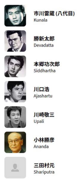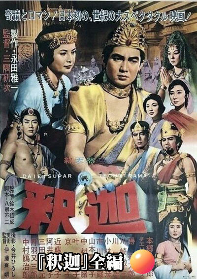 『釈迦』仏教の開祖・釈迦の生涯。日本で始めて70mmフィルムによって上映された国産の劇映画作品である。 |