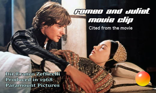 そこで一人の若く美しい娘にすっかり魅了されてしまった。だがその令嬢がキャピュレット家の一人娘ジュリエット(オリビア・ハッセー)だと知ったとき嘆くのだった。宴のあと、去りかねたロミオは恋の手びきで月光の庭園をさまよった。するとバルコニーにジュリエットが現われ、二人は恋を告白、結婚を誓いあった。